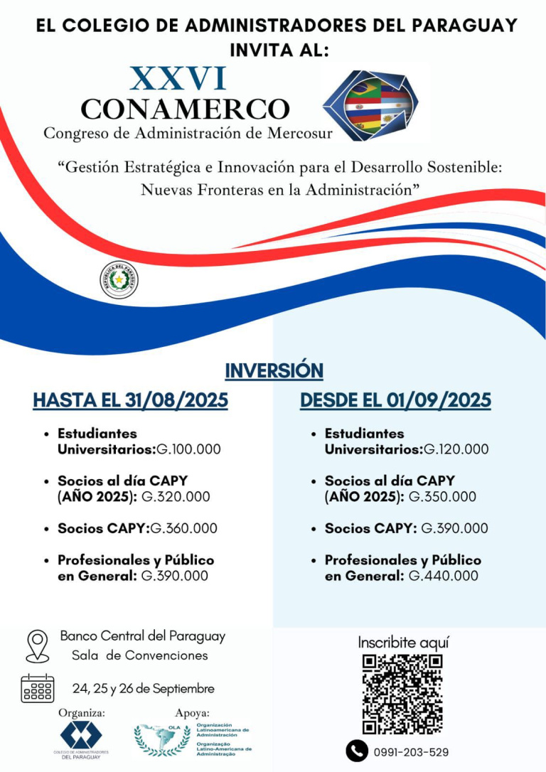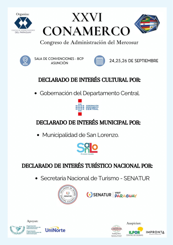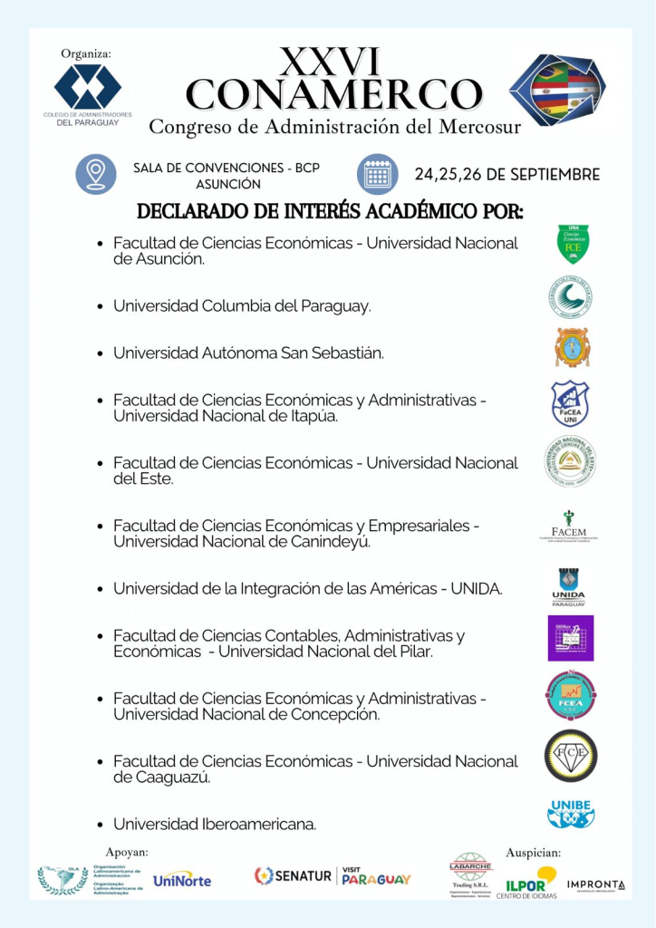 Este año, Paraguay será sede de uno de los eventos más importantes de la profesión administrativa en la región. Durante tres días compartiremos experiencias, conocimientos e iniciativas que fortalecerán nuestro crecimiento profesional y académico.